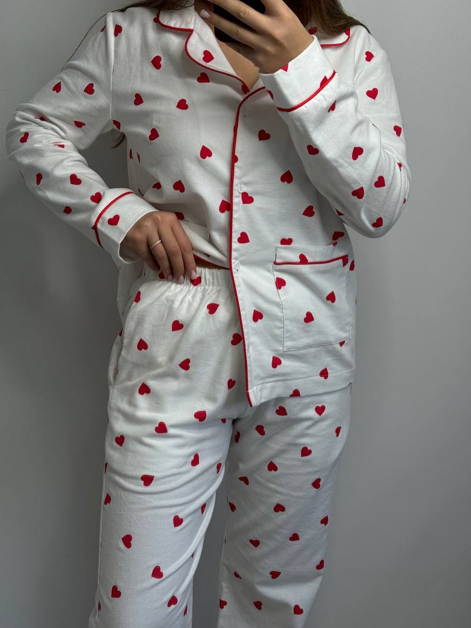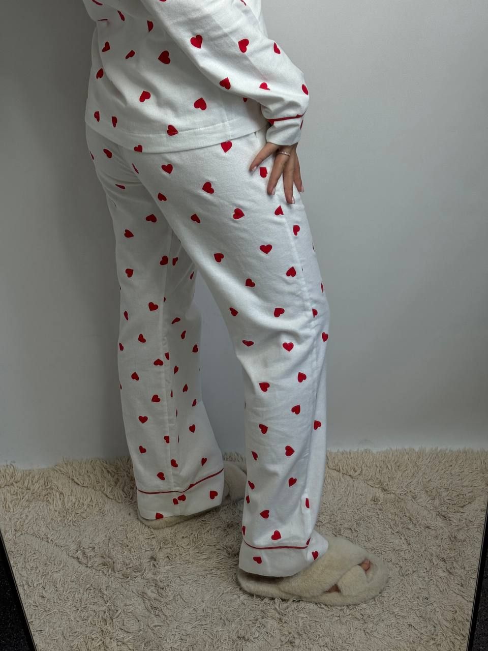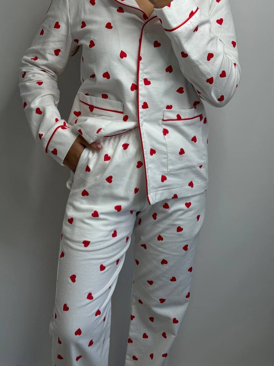 Фланелевий піжамний комплект (рубашка та штани) 239-24 білий в сердечко