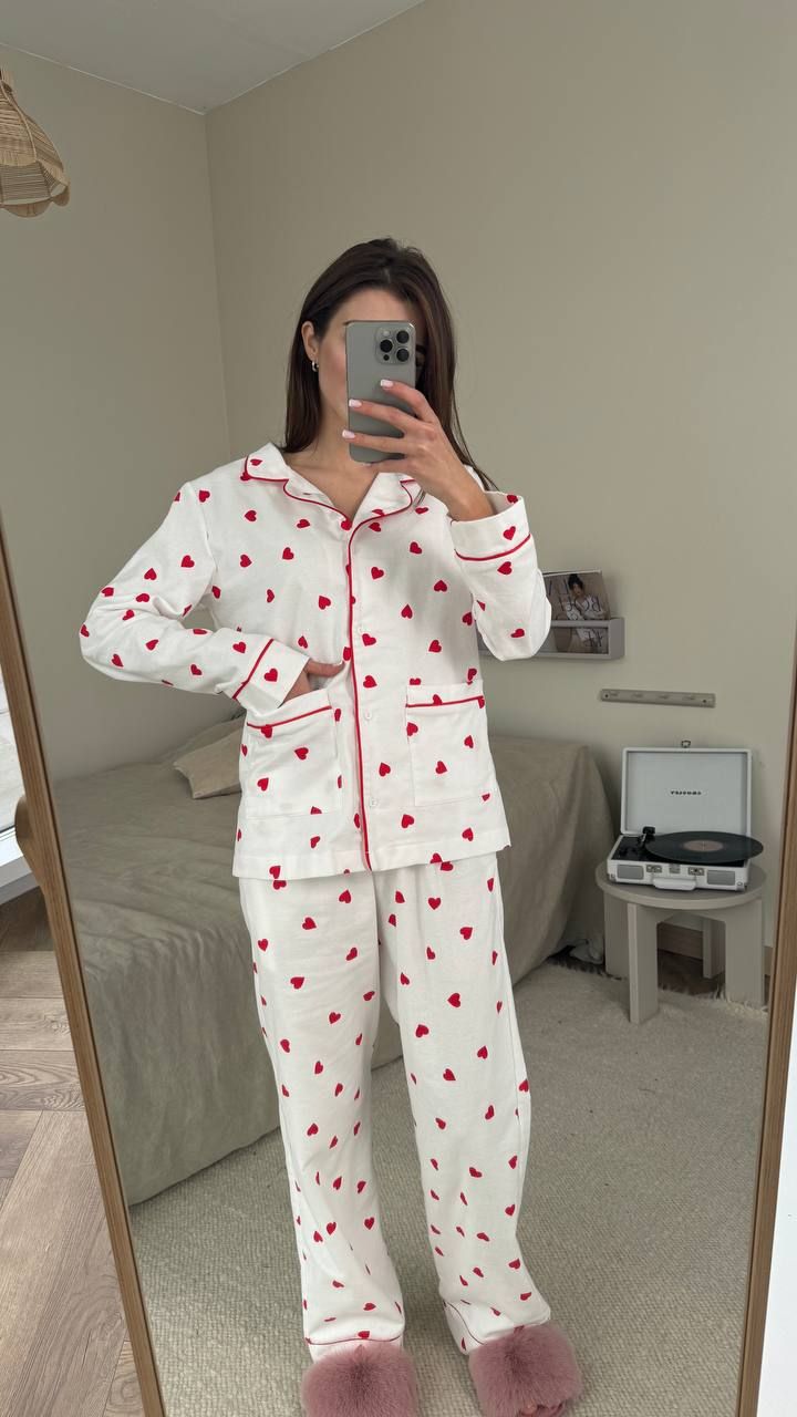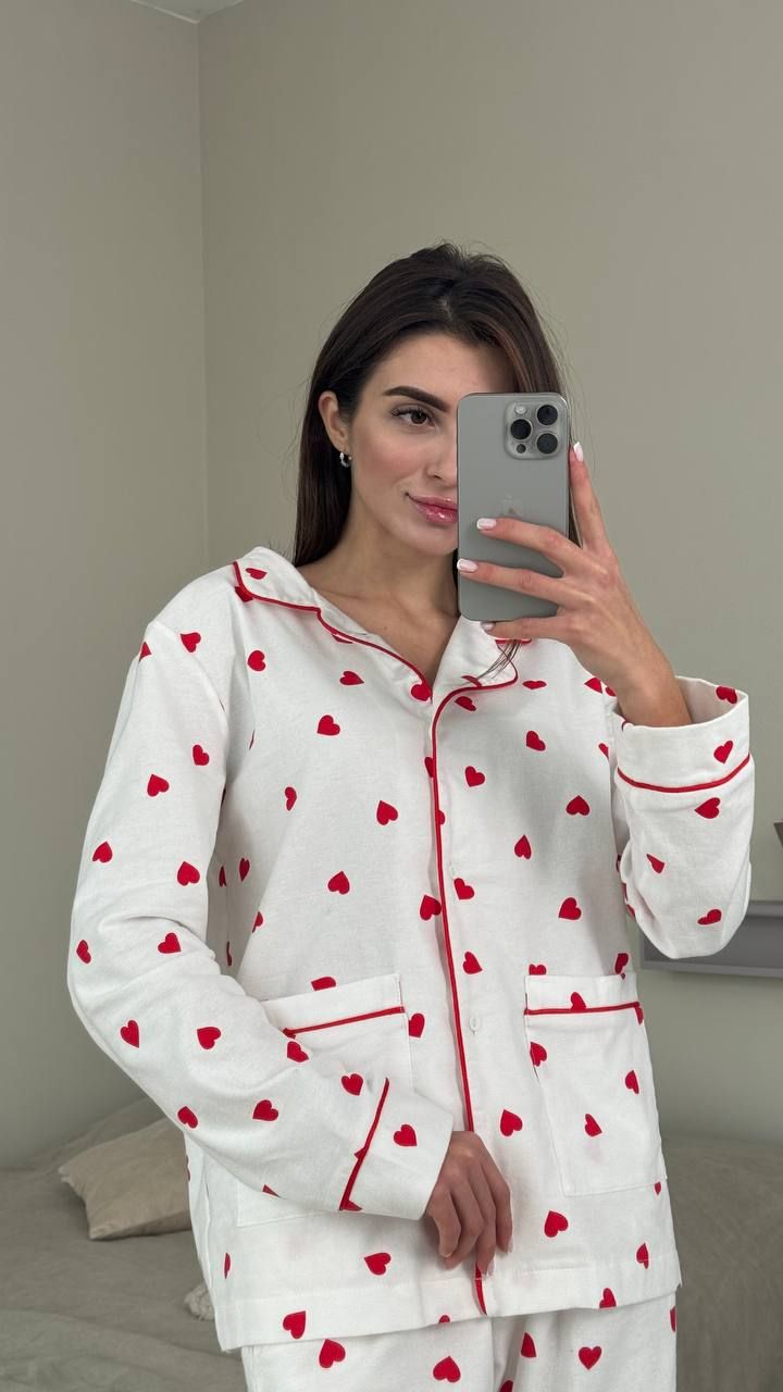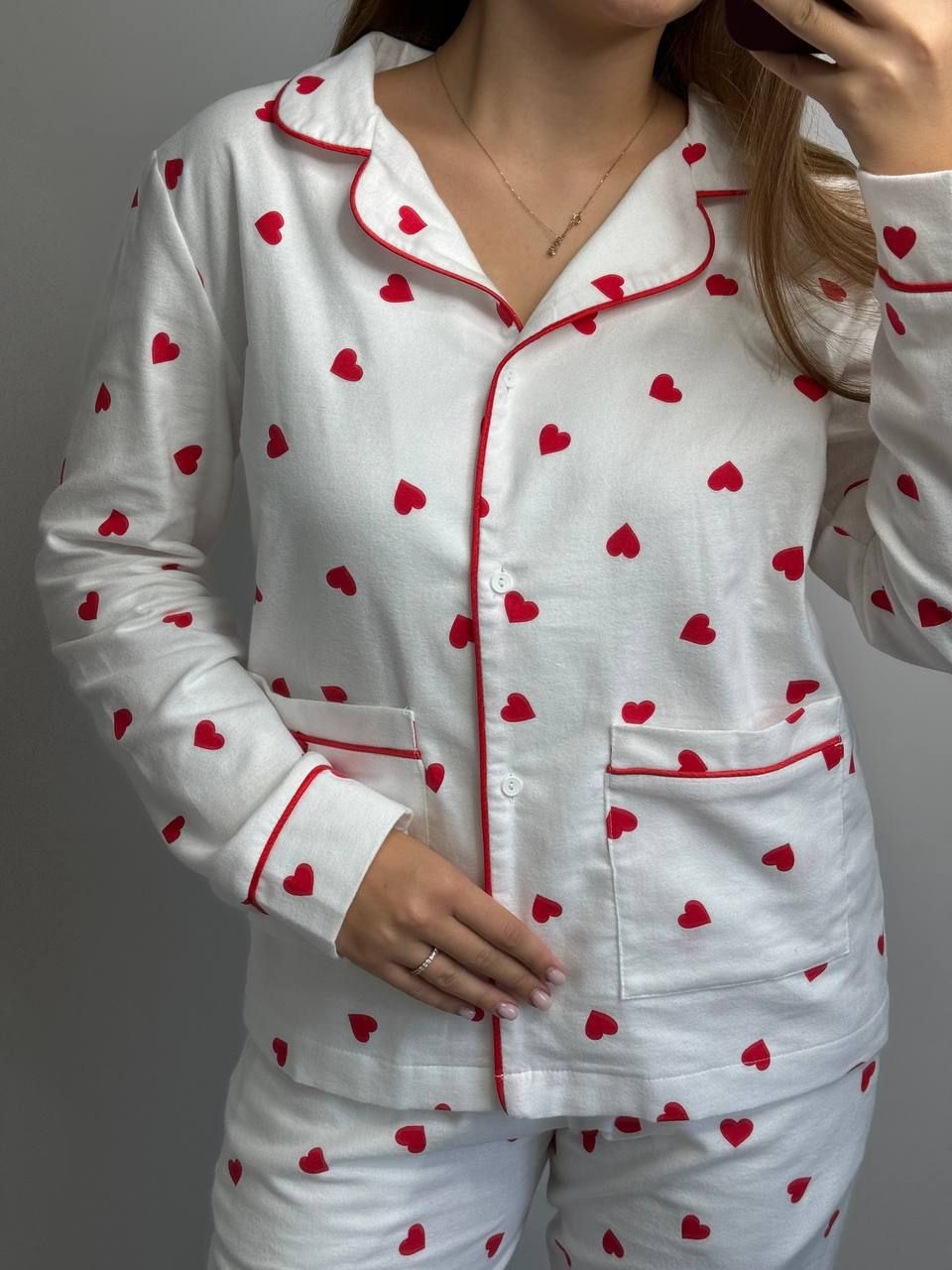 Фланелевий піжамний комплект (рубашка та штани) 239-24 білий в сердечко