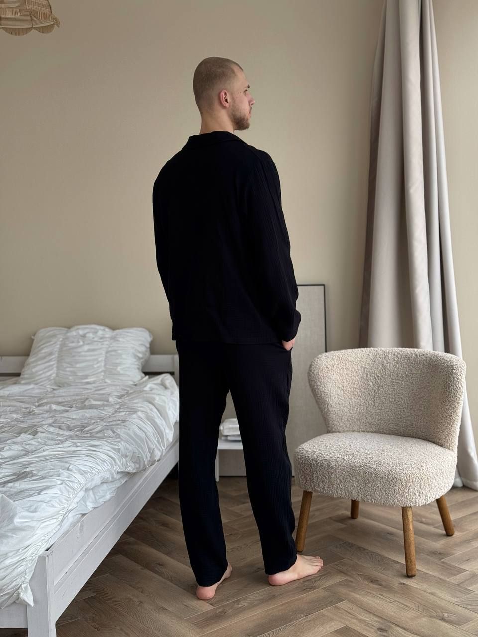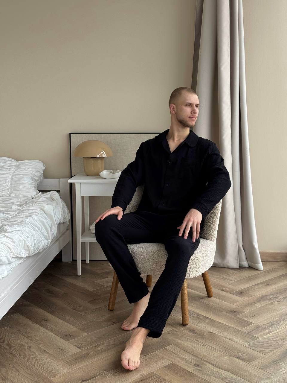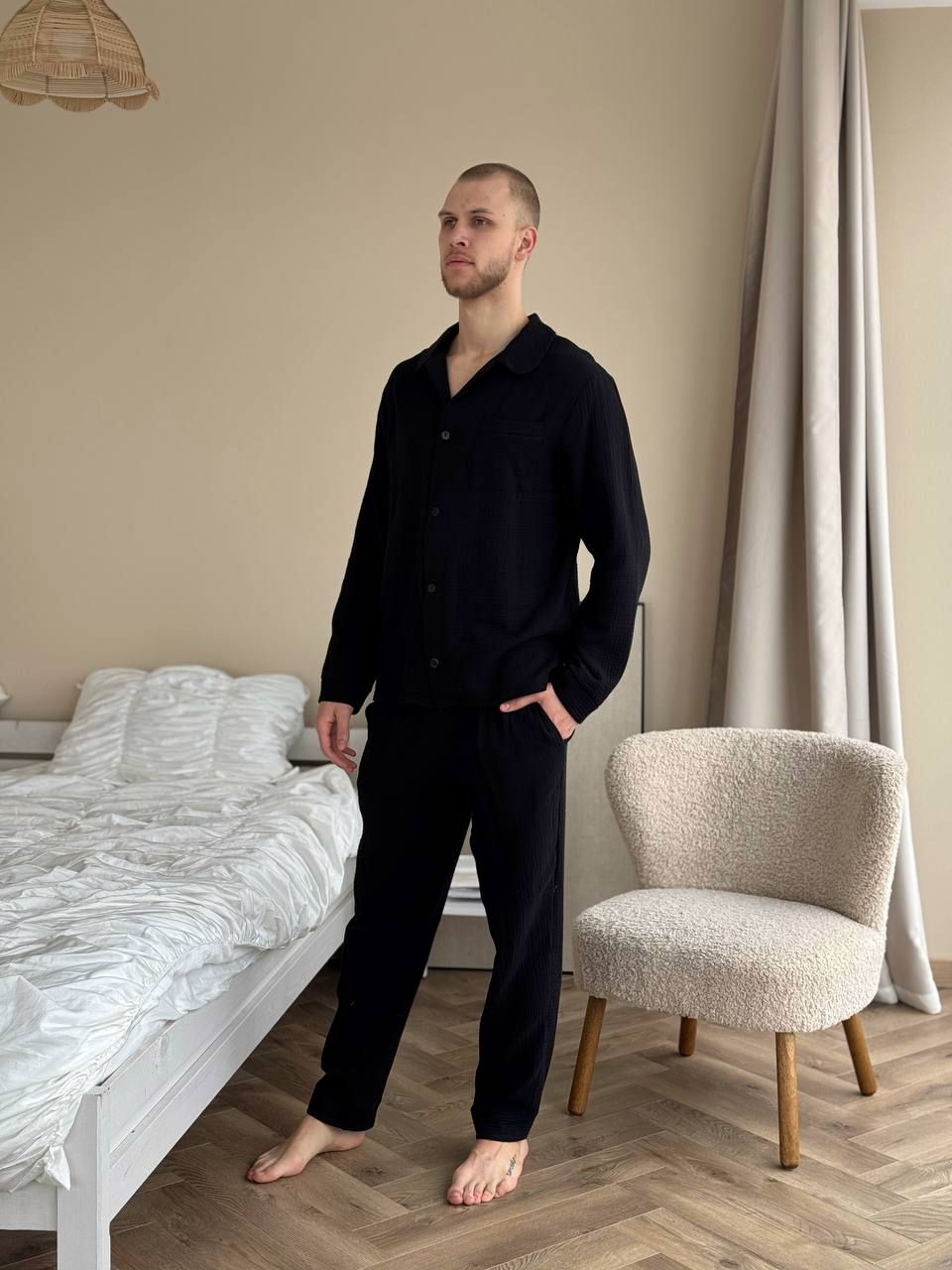 Легкий та стильний домашній костюм для нього. Наш костюм створений для тих, хто цінує комфорт і простоту. Натуральна тканина муслін дарує легкість та приємні відчуття на тілі, а вільний крій забезпечує свободу рухів. Ідеальний варіант для відпочинку вдома, прогулянки чи легких щоденних справ.