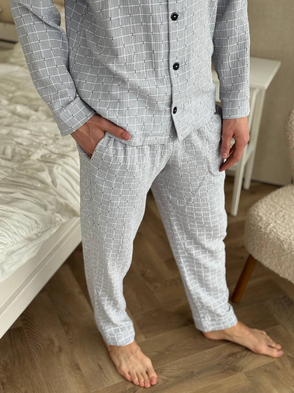 Муслінова чоловіча піжама 249-25 сірий в клітинку