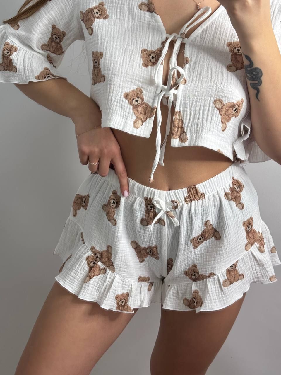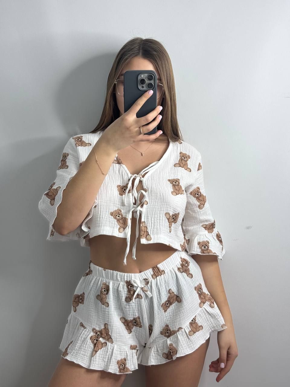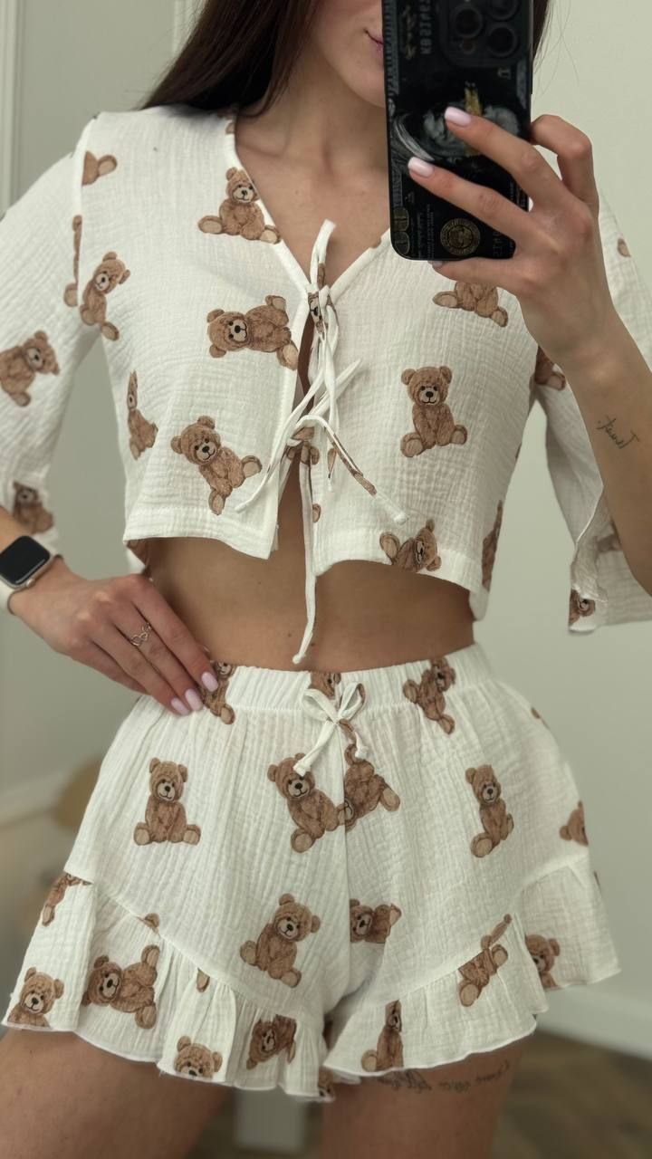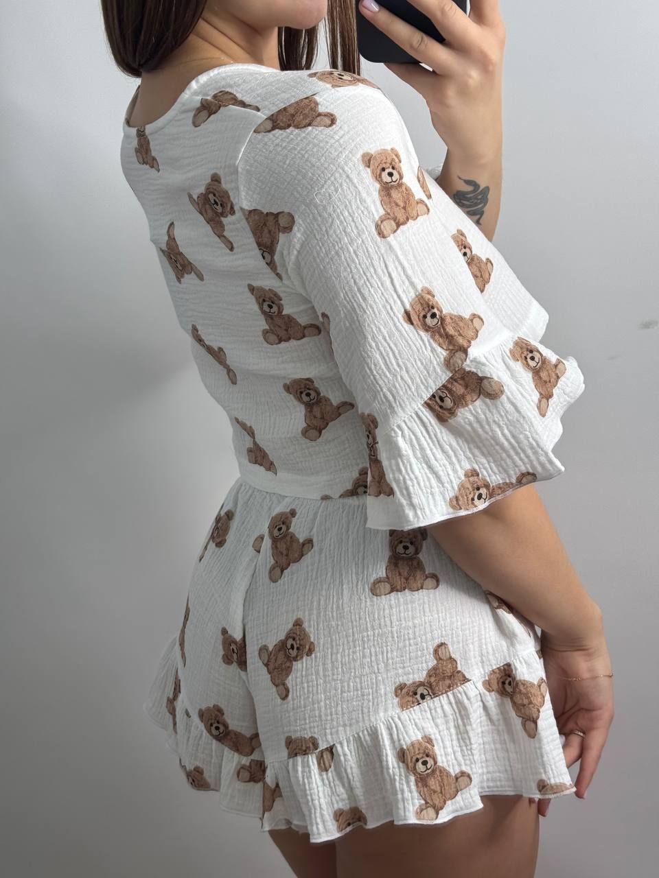 Мусліновий піжамний комплект для дому 233-24 ведмедик