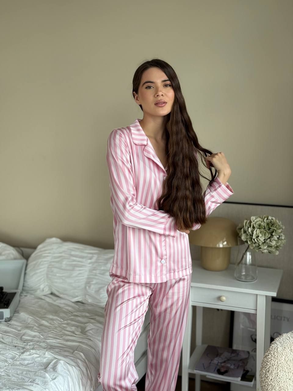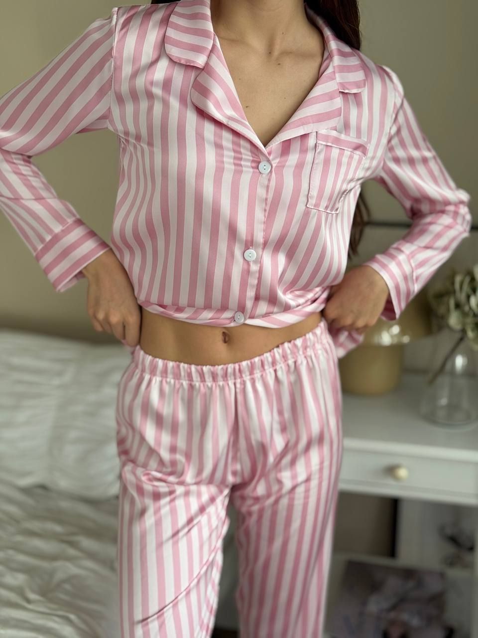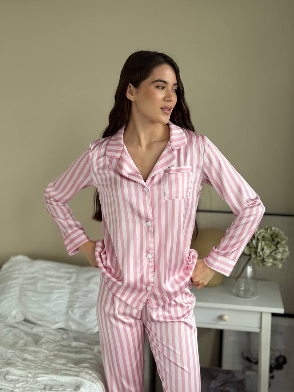 Піжама жіноча (сорочка та штани) сатинова 142-235 рожева смужка