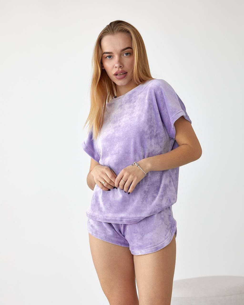 Піжама жіноча велюрова шорти та футболка 006-21 лаванда