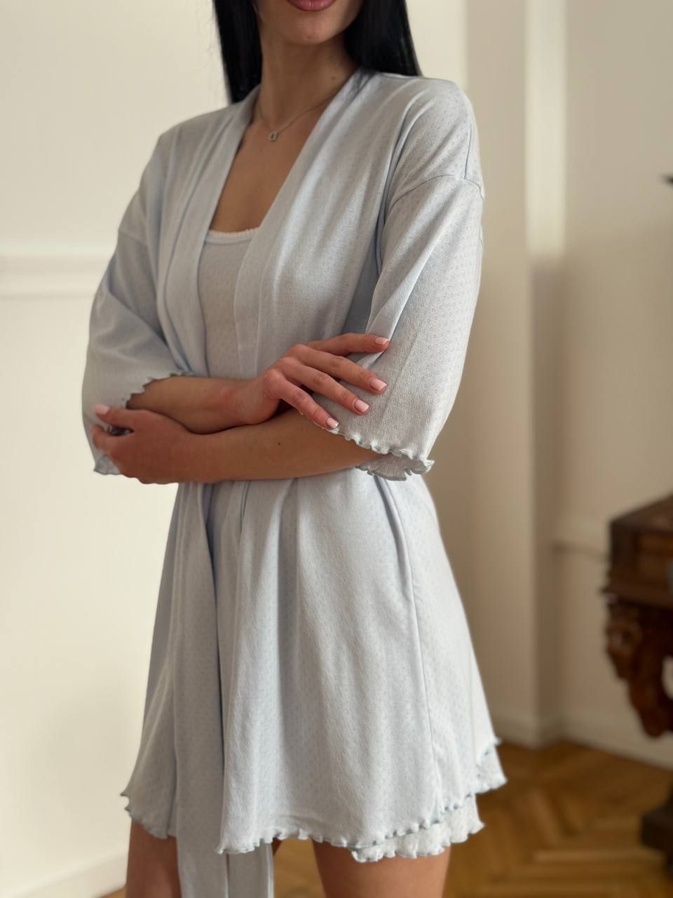 Ніжний домашній жіночий халат з бамбукового трикотажу — ідеальний вибір для щоденного комфорту.
