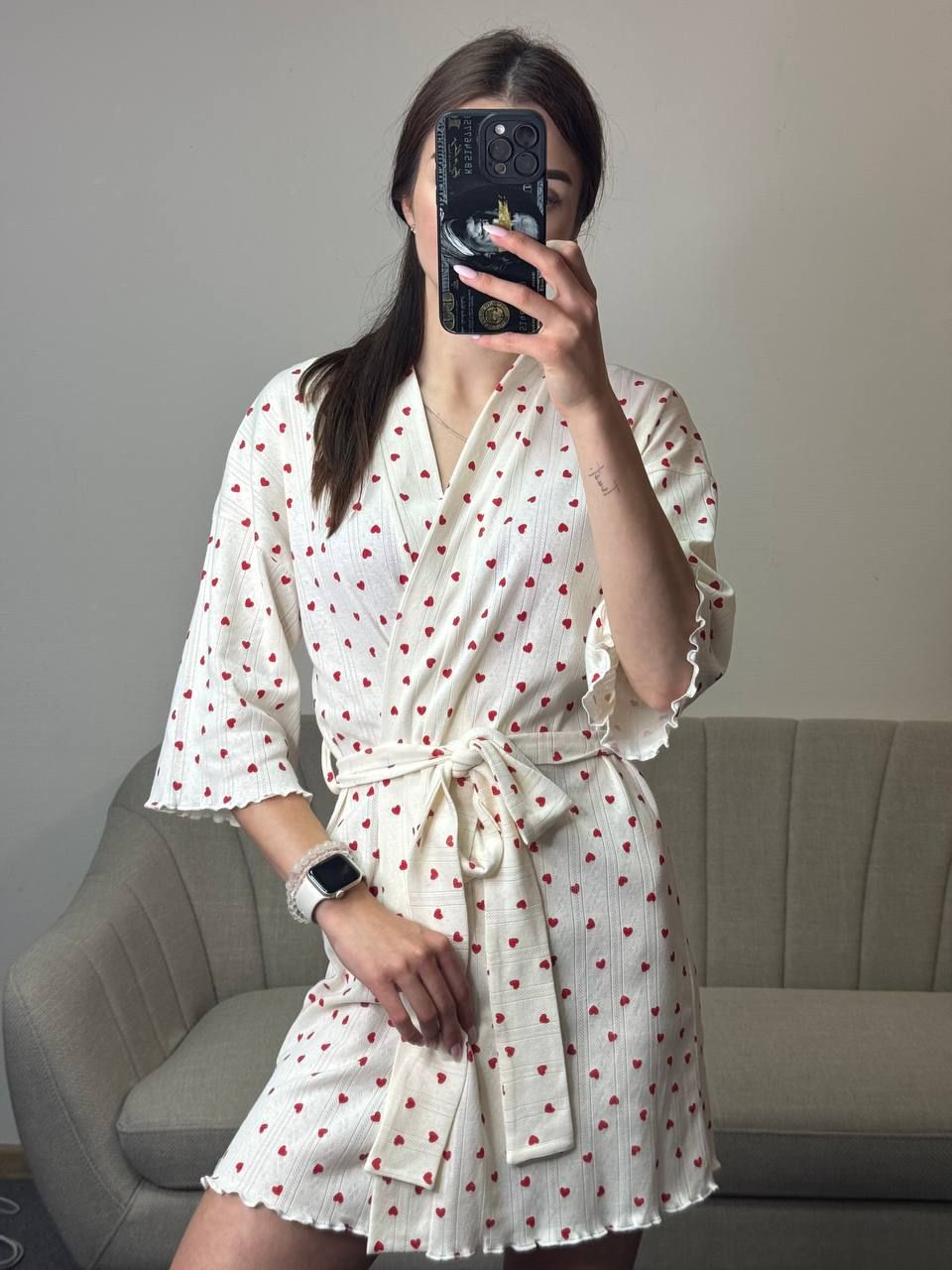 Трикотажний жіночий халат для дому 232-24 в сердечка