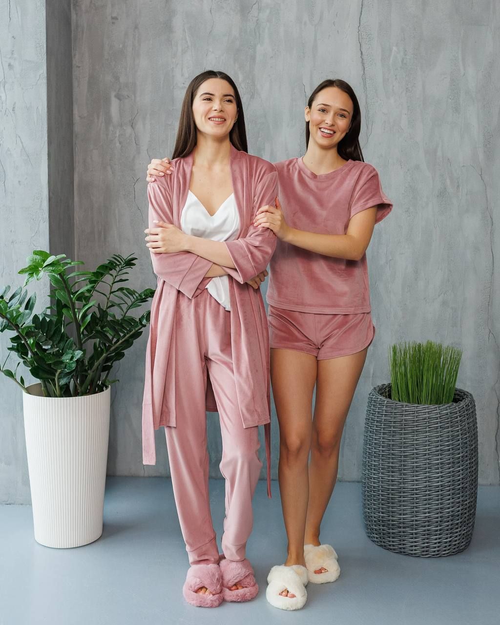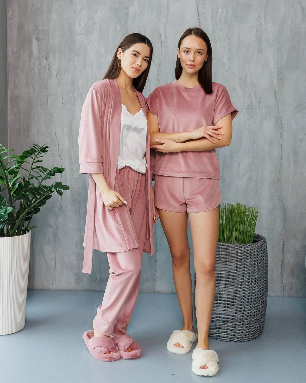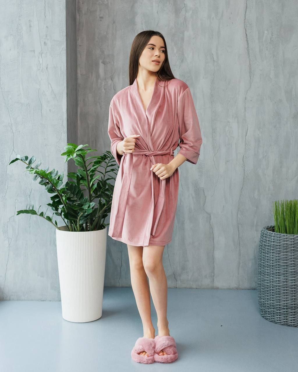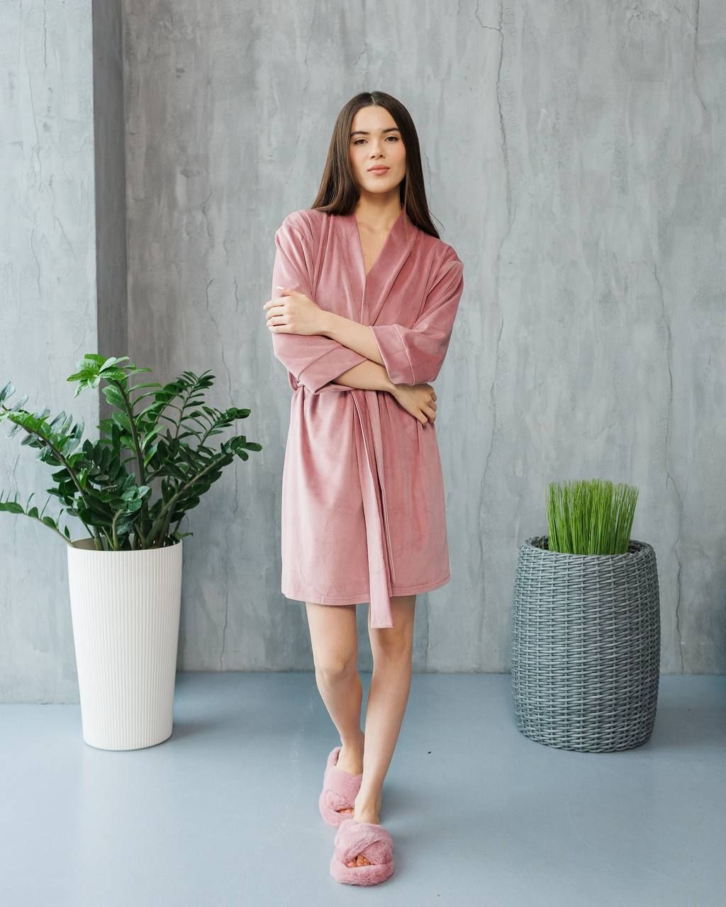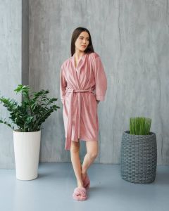 Велюровий халат жіночий з поясом 008-21 рожева пудра