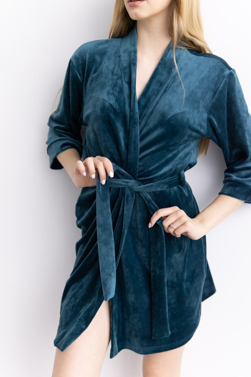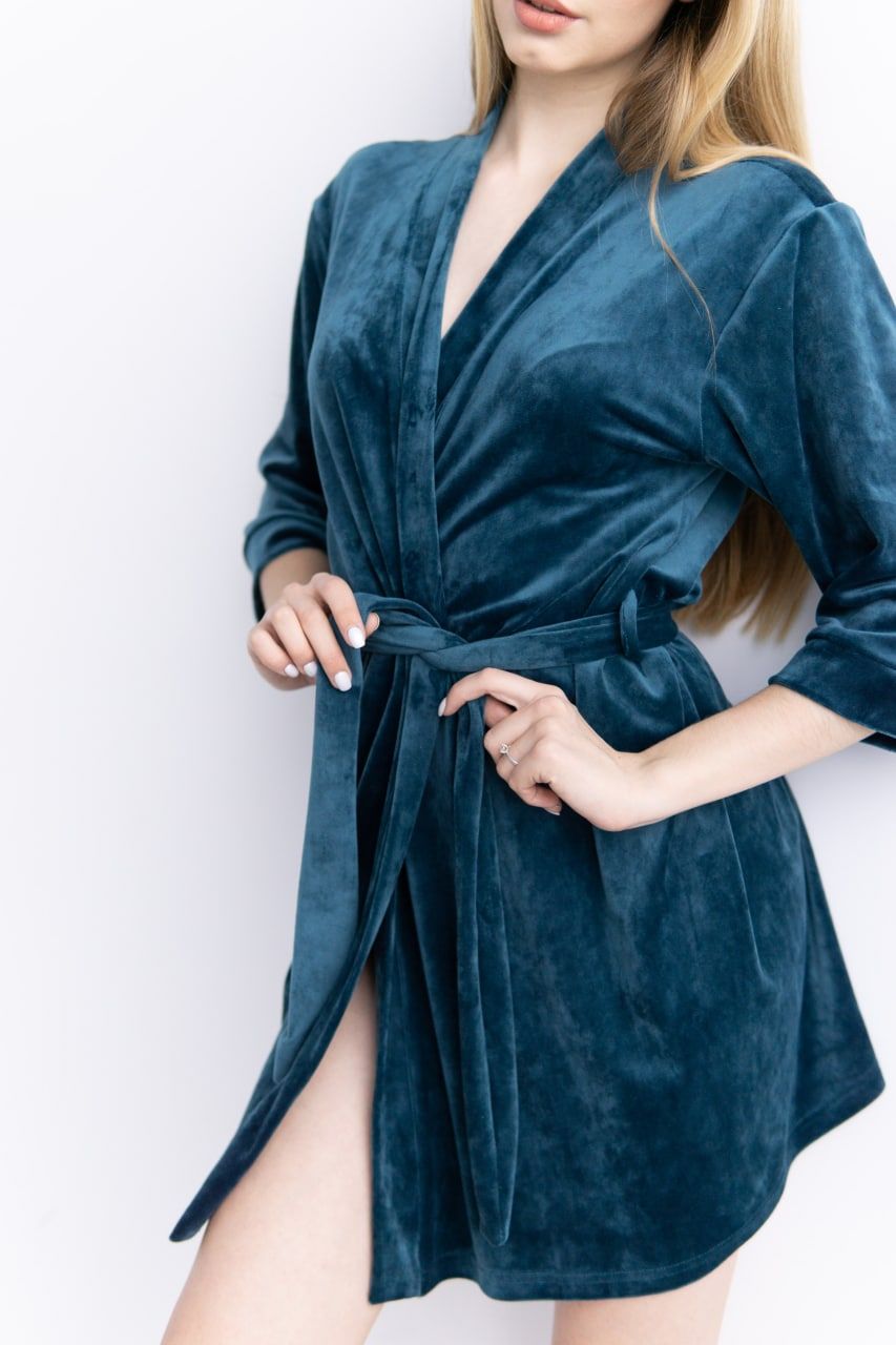 Велюровий халат жіночий з поясом 008-21 смарагд