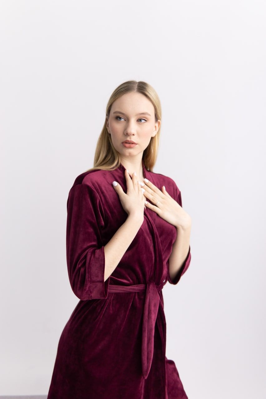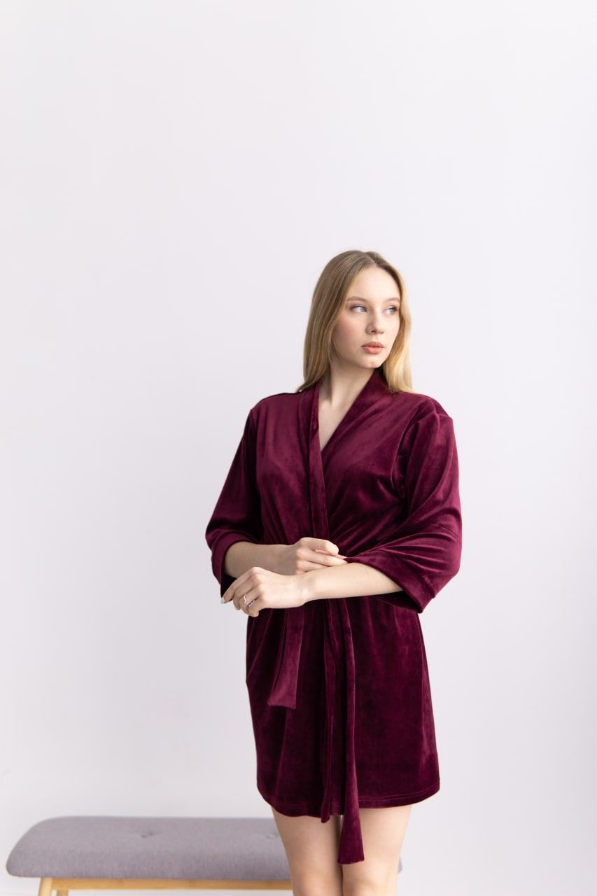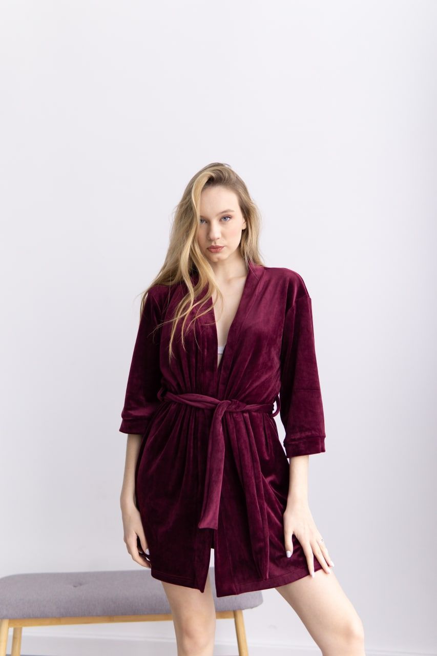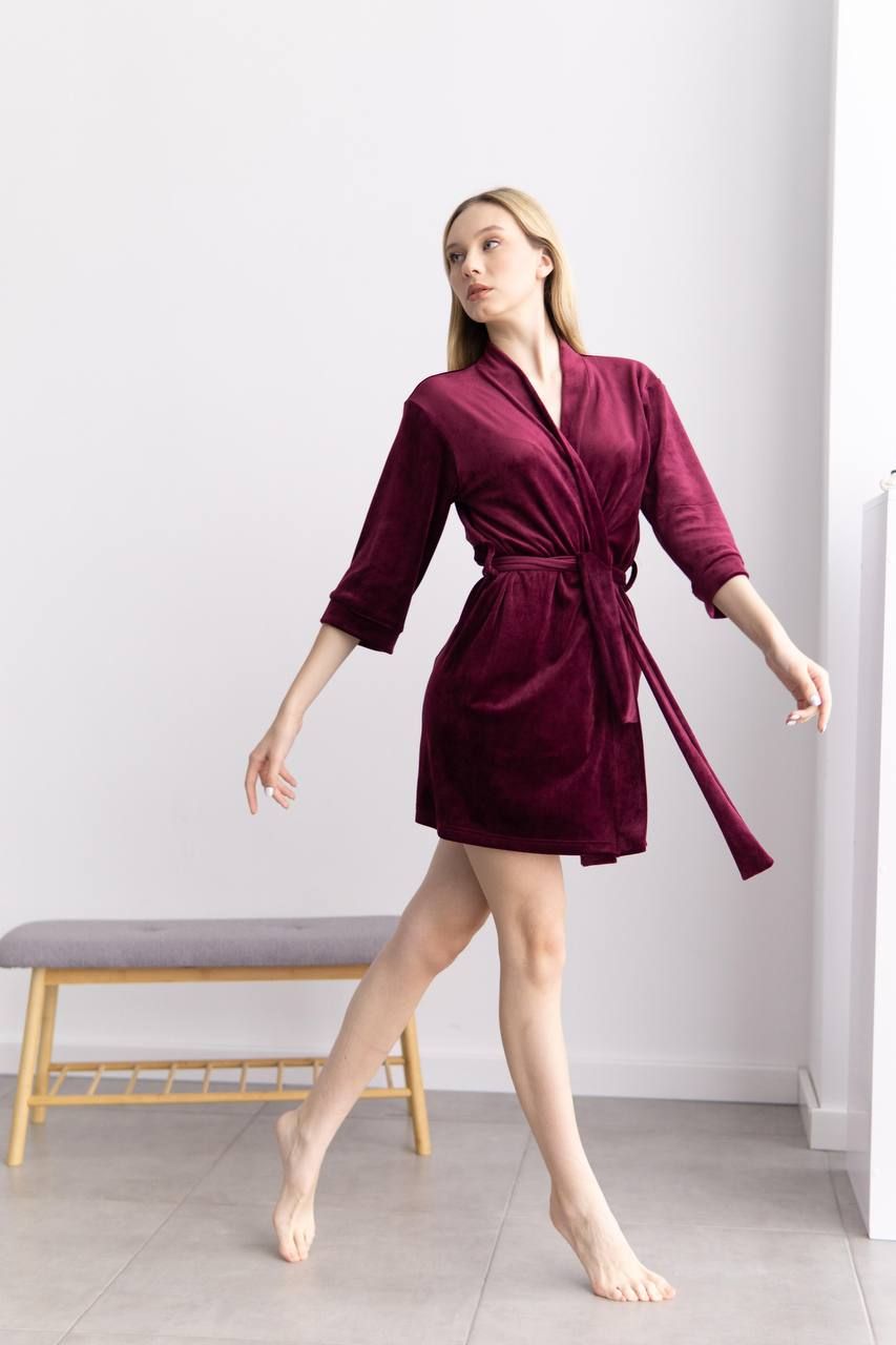 Велюровий халат жіночий з поясом 008-21-2 бордо