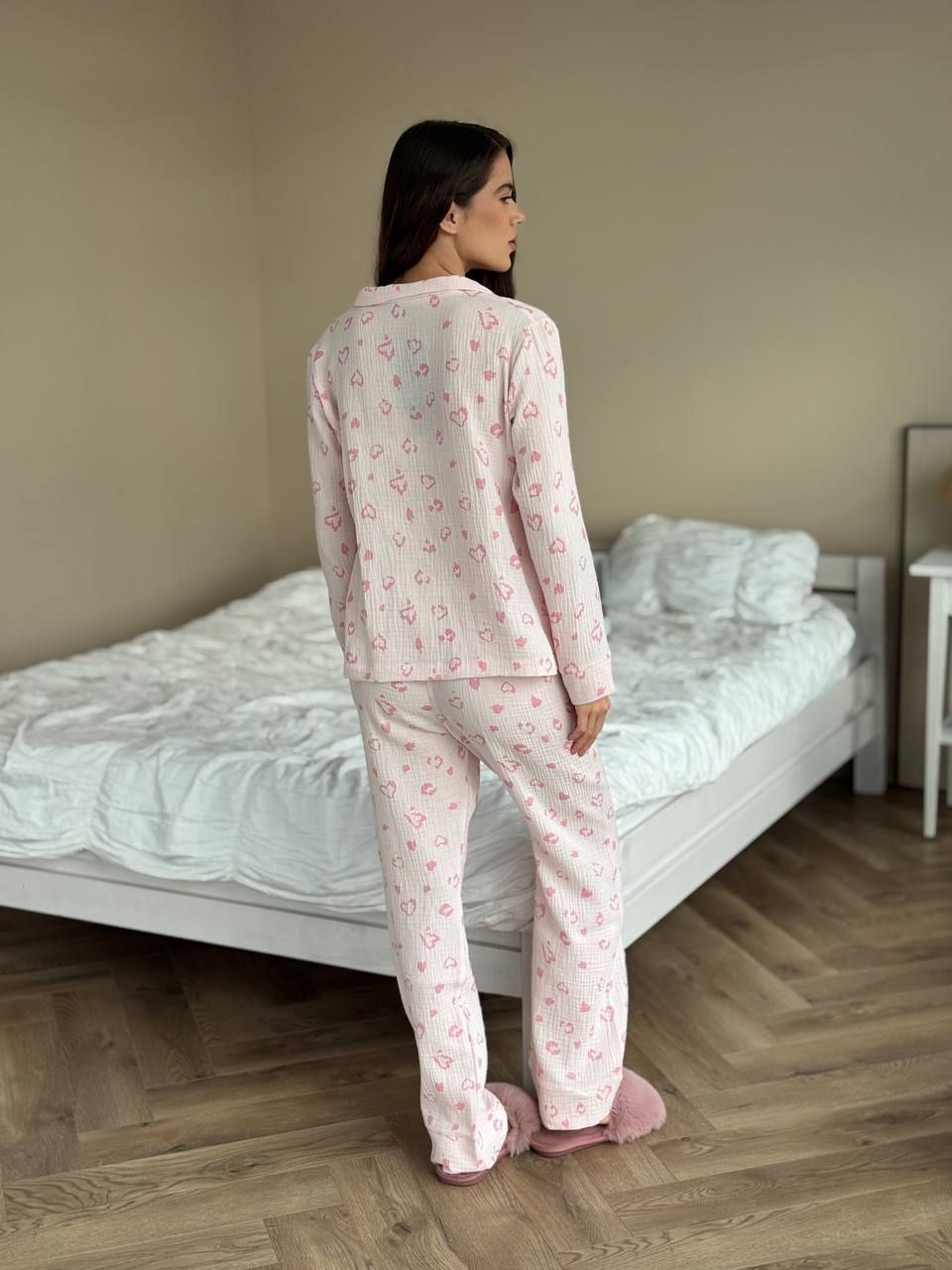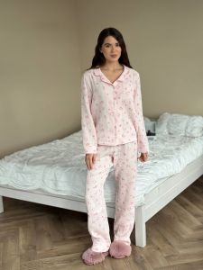 Жіночий піжамний комплект з мусліну 143-231 рожевий