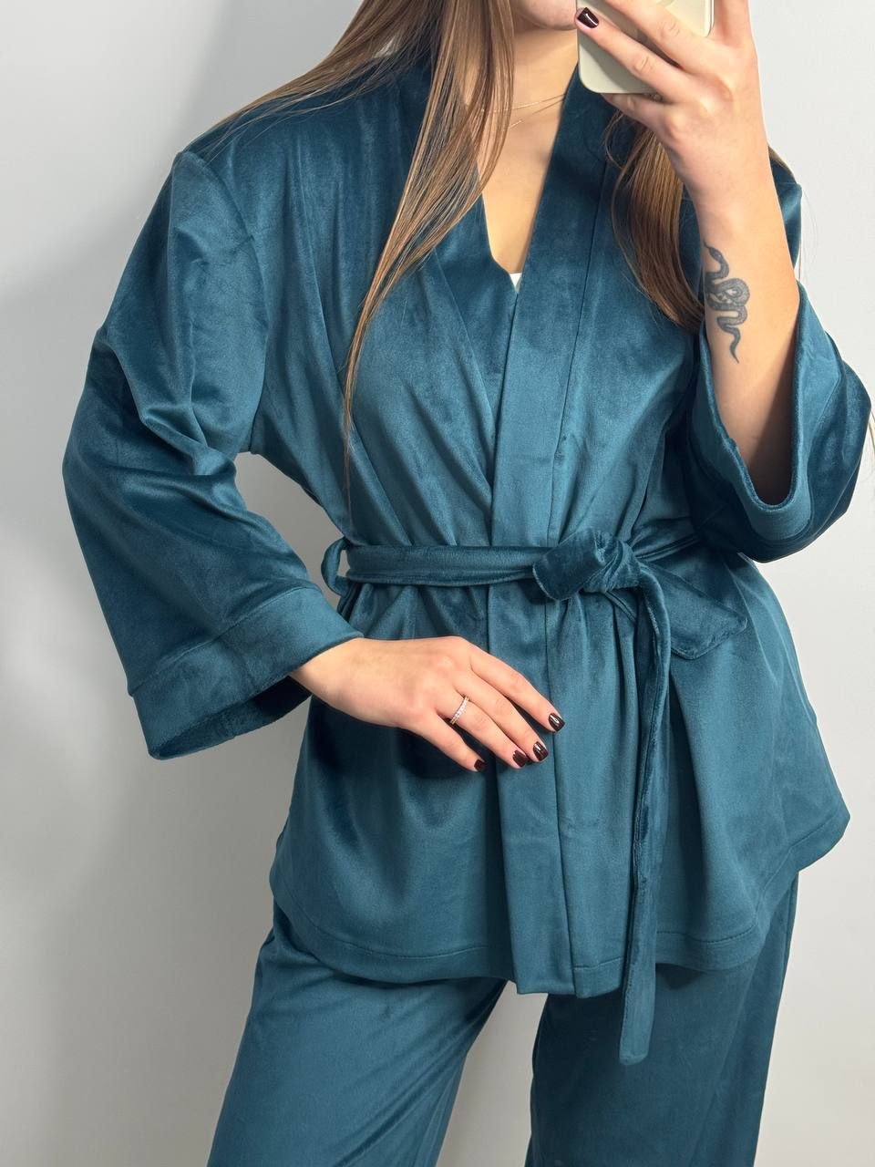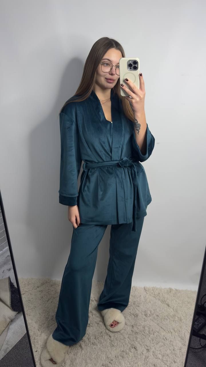 Элегантный и невероятно комфортный костюм, созданный для тех, кто ценит уют и стиль даже дома. Модель на запах красиво подчеркивает фигуру, обеспечивая идеальную посадку и свободу движений. Костюм выполнен из мягкой, приятной к телу ткани, которая не теряет вид даже после многократных стирок. Качественный пошив, аккуратные швы и продуманный крой гарантируют комфорт и долговечность. Идеальный выбор для дома, отдыха или стильных домашних образов — выглядит безупречно в любой момент.
