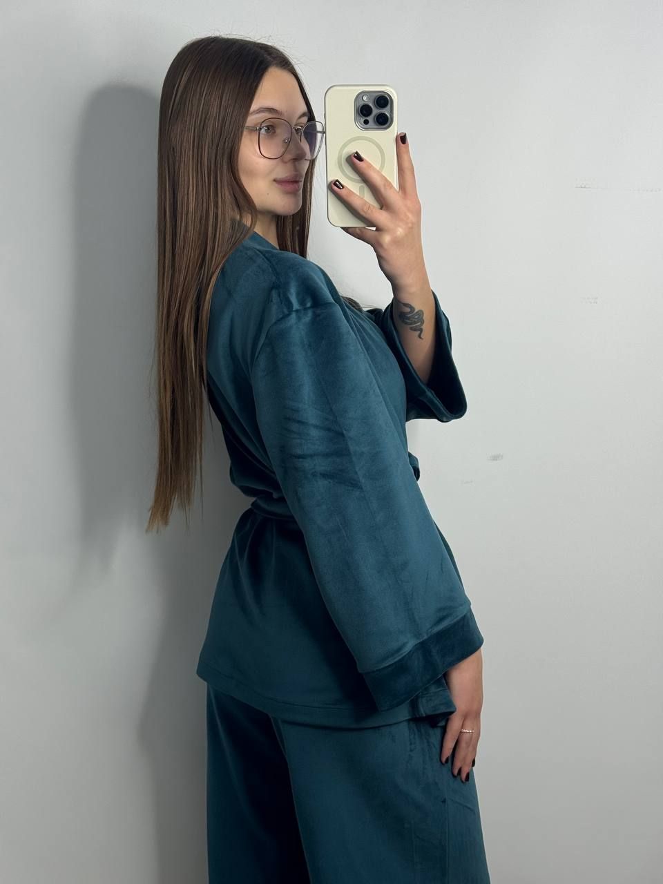 Женский велюровый костюм (двойка) для дома на запах 278-25 изумруд